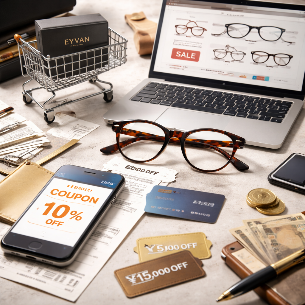 アイヴァンのメガネは基本的に定価販売が多いブランドですが、店舗や購入時期によってはキャンペーンや特典が用意されている場合があります。