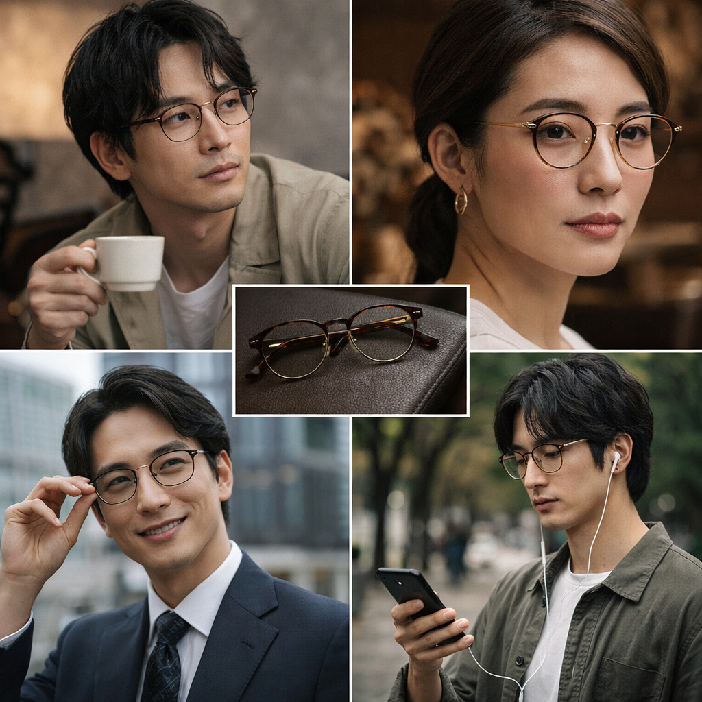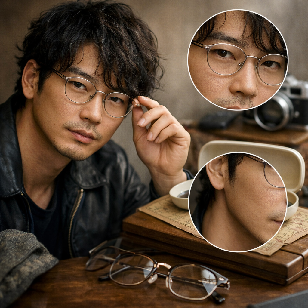 また、フレームが強すぎないことで、顔そのものの魅力を引き立てる点も重要です。あくまで主役は顔であり、眼鏡は補助という理想的な関係が成立しています。