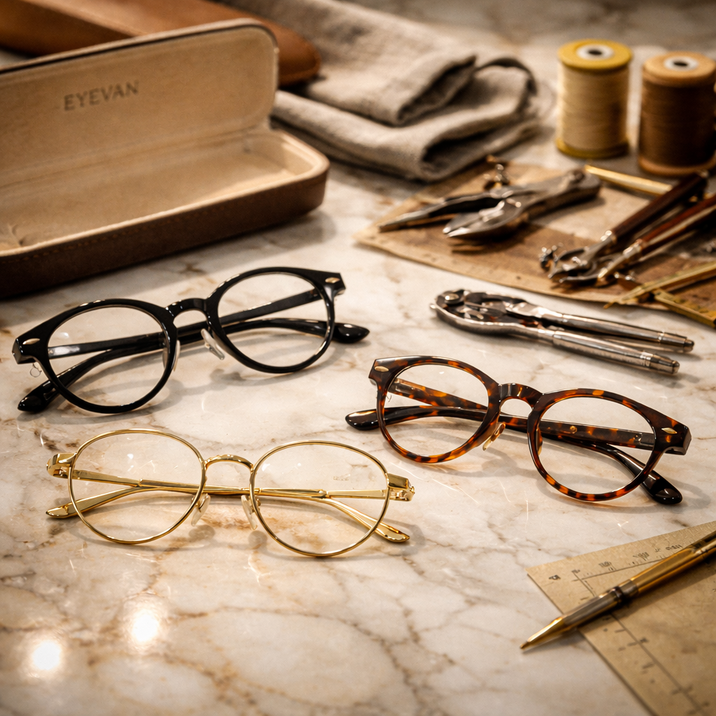 アイヴァンのデザインは、ヴィンテージ眼鏡が持つ普遍的な美しさや歴史的背景をベースにしながら、現代のライフスタイルに合うよう細部まで再構築されています。