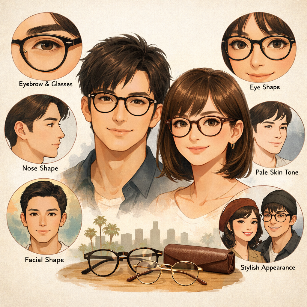 メガネが似合うかどうかは、顔型との相性が非常に重要です。顔の輪郭とフレームの形をバランスよく組み合わせることで、顔全体の印象が自然に整います。