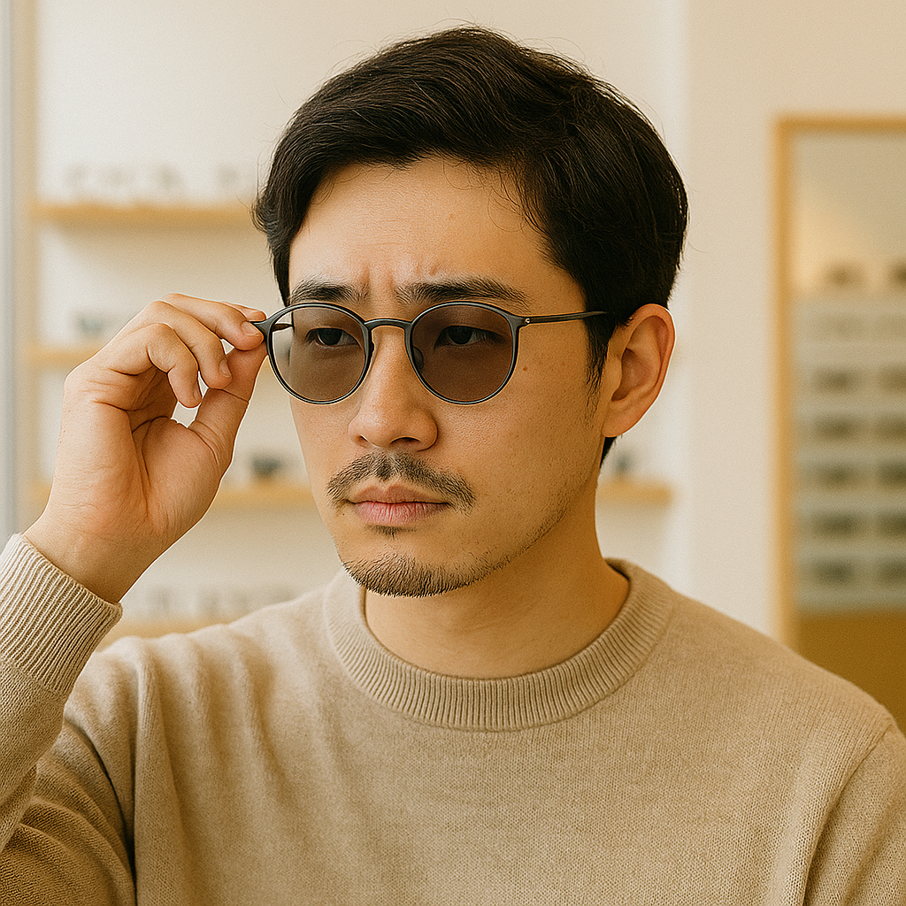 特にシンプルで洗練されたフレームを選べば「調光レンズ=ダサい」という印象を覆せるだけでなく、自分らしいスタイルを引き立てるアイテムとして活用できるでしょう。