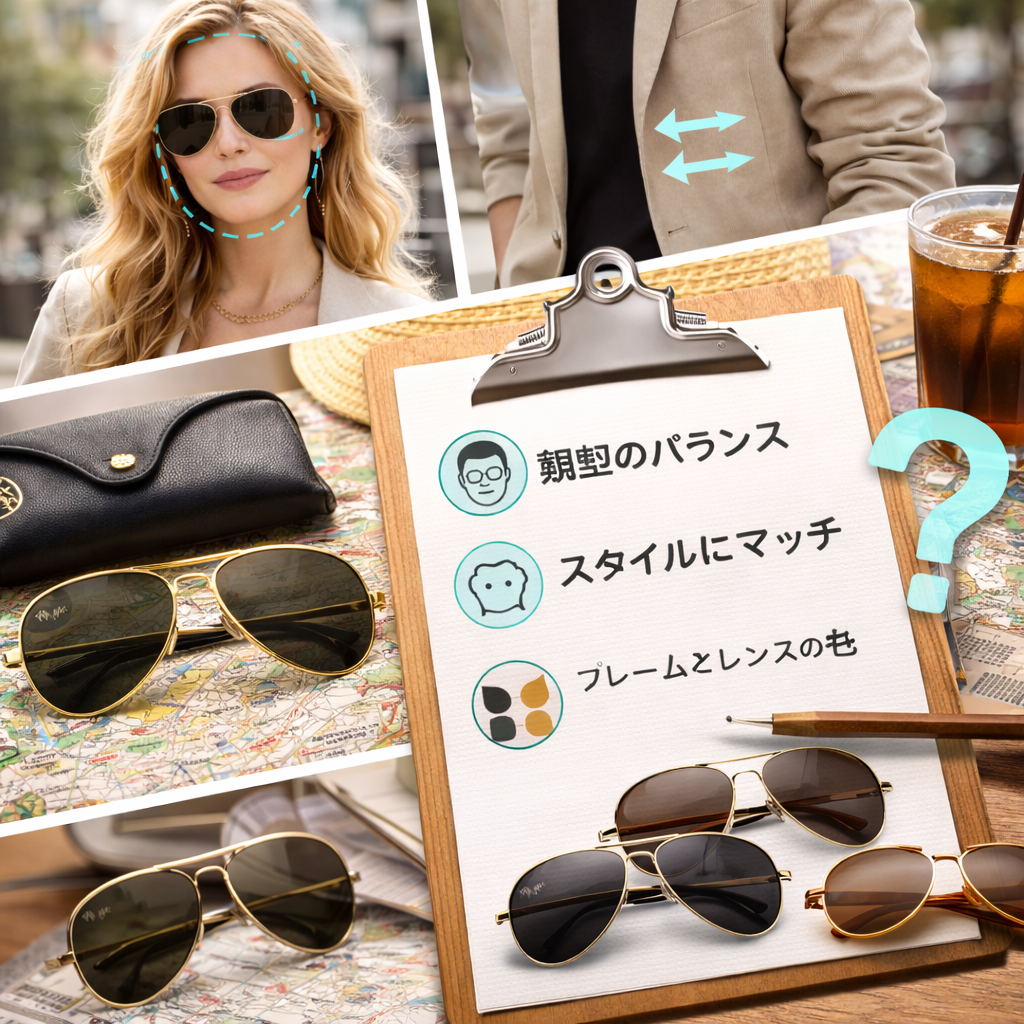 そのため、アビエーターを選ぶ際はデザインだけで判断せず、実際に掛けたときのフィット感や見え方を確認し、自分の顔にとって最も自然に映るサイズを見極めることが大切です。