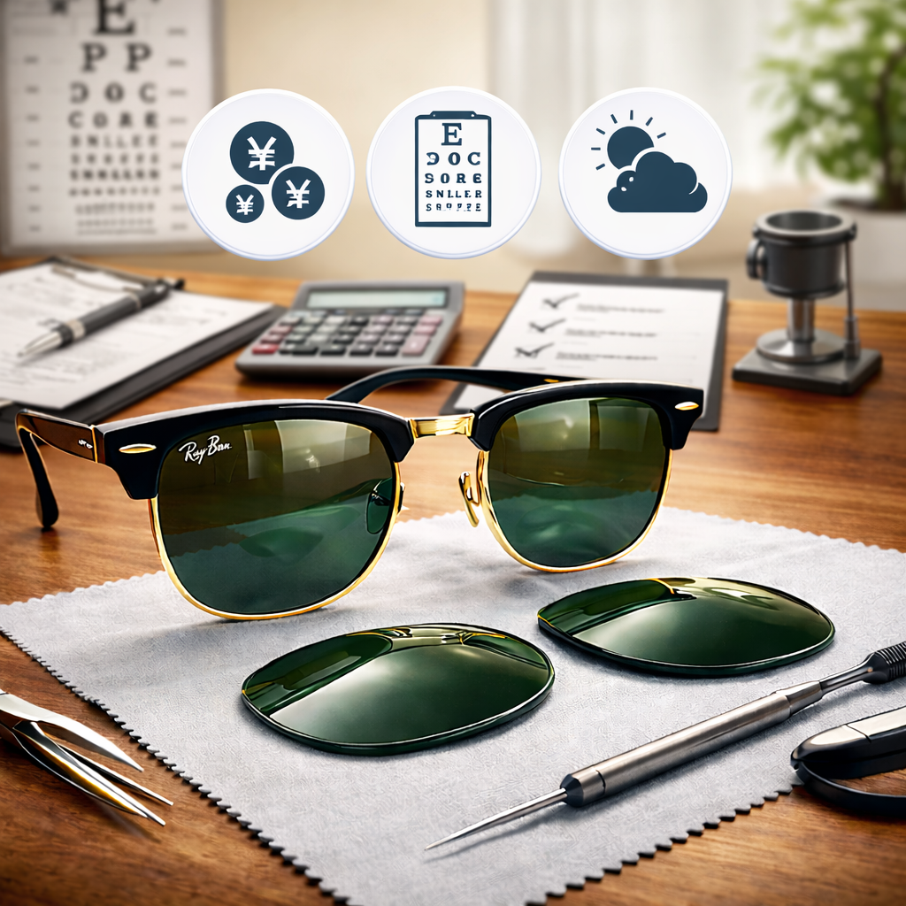 レイバンのレンズ交換で後悔しないためには、どこで交換するかを決める前に、いくつかの重要なポイントを整理しておくことが欠かせません。