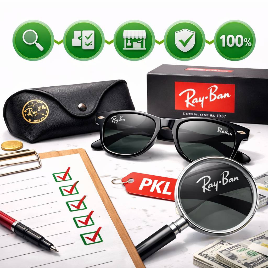 レイバンの真贋を見極めるうえでは、本体だけでなく付属品や購入先の情報も非常に重要な判断材料になります。
